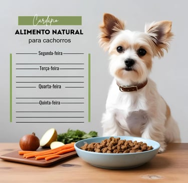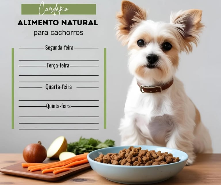 Aprenda a montar um cardápio semanal completo de alimentação natural para cães de pequeno porte com ingredientes acessíveis, equilibrados e saudáveis. Veja uma tabela prática, dicas de preparo e como organizar a rotina alimentar do seu pet com economia e bem-estar.