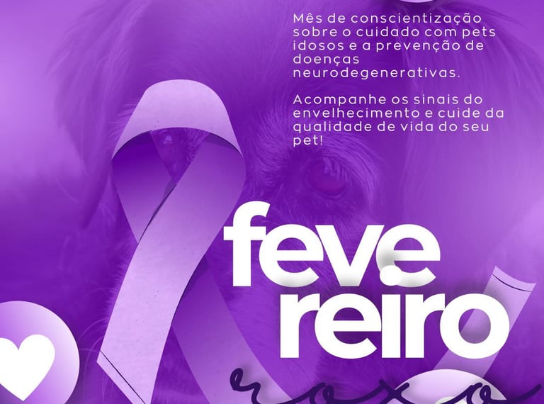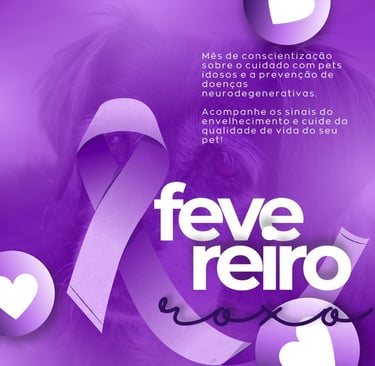 O Fevereiro Roxo é uma campanha dedicada à conscientização sobre doenças neurodegenerativas que afetam cães e gatos, especialmente na fase sênior. Este mês é uma oportunidade de alertar os tutores para problemas de saúde que podem impactar diretamente a qualidade de vida dos pets, como a Síndrome da Disfunção Cognitiva (SDC), também conhecida como "Alzheimer em cães e gatos".
